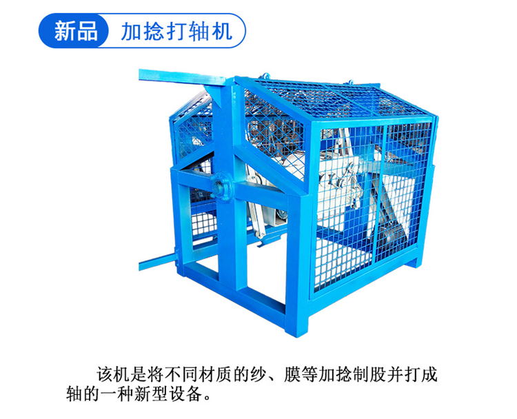 加捻打軸一體機(jī)是將不同材質(zhì)的紗、膜等加捻制股并打成軸的一種新型設(shè)備。