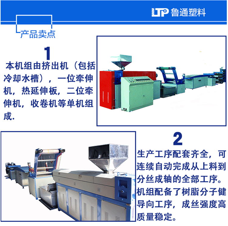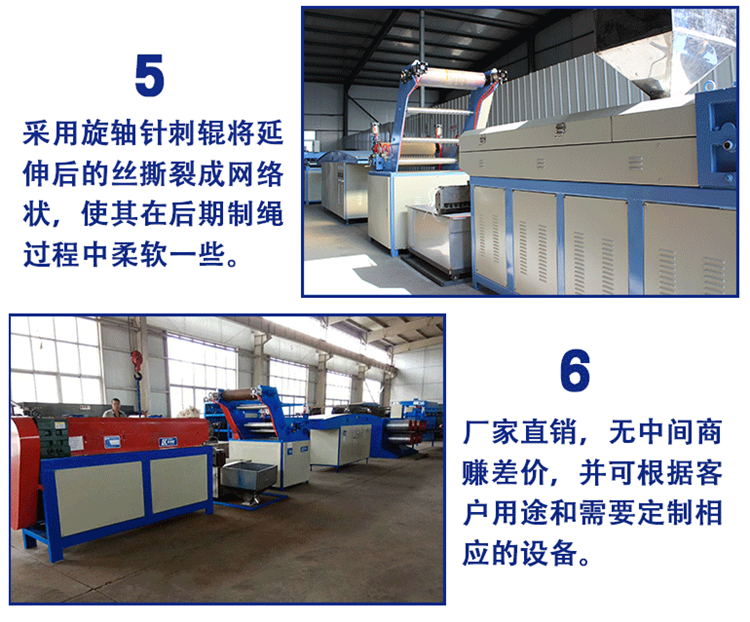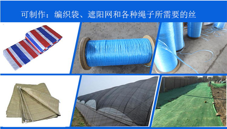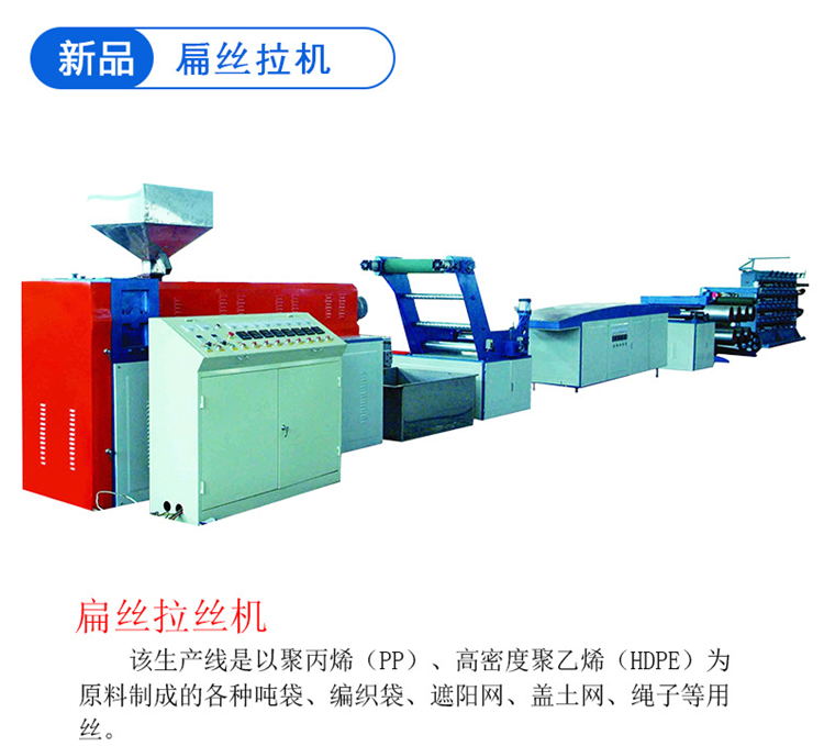扁絲拉絲機 該生產線是以聚丙烯(PP)、聚乙烯(HDPE)為原料制成的各種噸袋、編織袋、遮陽網、蓋土網、繩子等用絲。